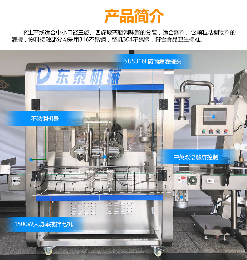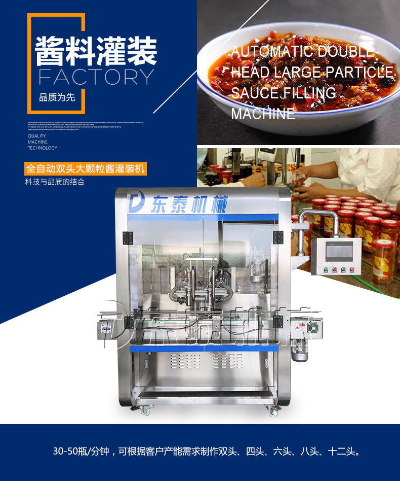 隨著機(jī)械技術(shù)的快速發(fā)展灌裝機(jī)的發(fā)展也是日新月異,使得其種類比較多。蘸醬在我國擁有悠久的歷史,在我國烹飪中占有著重要的地位,發(fā)展到現(xiàn)在在做菜和食品中也不可或缺,巨大的市場使得蘸醬灌裝機(jī)擁有巨大的市場,醬類廠家在引進(jìn)設(shè)備時(shí)都想采購到高效率、適合自己的蘸醬灌裝機(jī)械。人們對食品要求的提高使得醬類生產(chǎn)廠家迎來了較大的變格,安全衛(wèi)生是非常重要的標(biāo)準(zhǔn),因此對蘸醬灌裝機(jī)的選擇也更加的要求嚴(yán)格,許多傳統(tǒng)的機(jī)械已經(jīng)不能滿足企業(yè)高標(biāo)準(zhǔn)、高效率的要求。因此選擇一款適合的蘸醬灌裝機(jī)械產(chǎn)品顯得尤為重要。