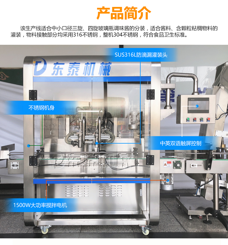 東泰機(jī)械通過十多年的努力和發(fā)展,現(xiàn)已成為集科研、設(shè)計(jì)制造、成套供應(yīng)、技術(shù)咨詢服務(wù)、工程總承包為一體的高科技型企業(yè)。如今專業(yè)的東泰技術(shù)團(tuán)隊(duì)根據(jù)醬料市場(chǎng)研發(fā)推出的牛肉醬定量灌裝機(jī)設(shè)備得到市場(chǎng)的認(rèn)可和用戶的青睞。同時(shí)這款自動(dòng)化、智能化、效率化、功能化的醬料灌裝機(jī)械設(shè)備帶領(lǐng)著醬料市場(chǎng)進(jìn)入規(guī);纳a(chǎn)領(lǐng)域中,為相應(yīng)企業(yè)提供方便、快捷、省時(shí)省力的現(xiàn)代化快節(jié)奏的發(fā)展。如果您有需求,歡迎您到東泰機(jī)械實(shí)地考察選購!